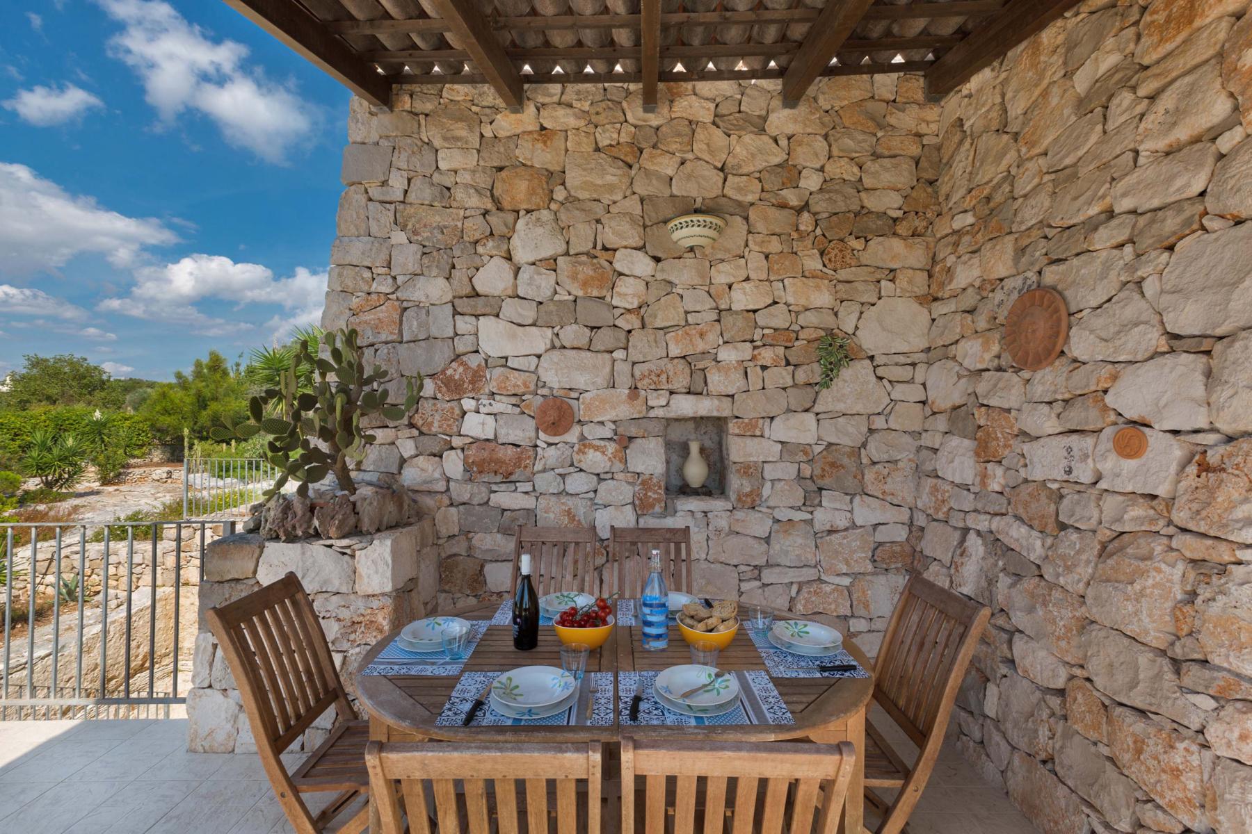 Villa Apuli exteriors: the swimming pool, the sea and Puglia