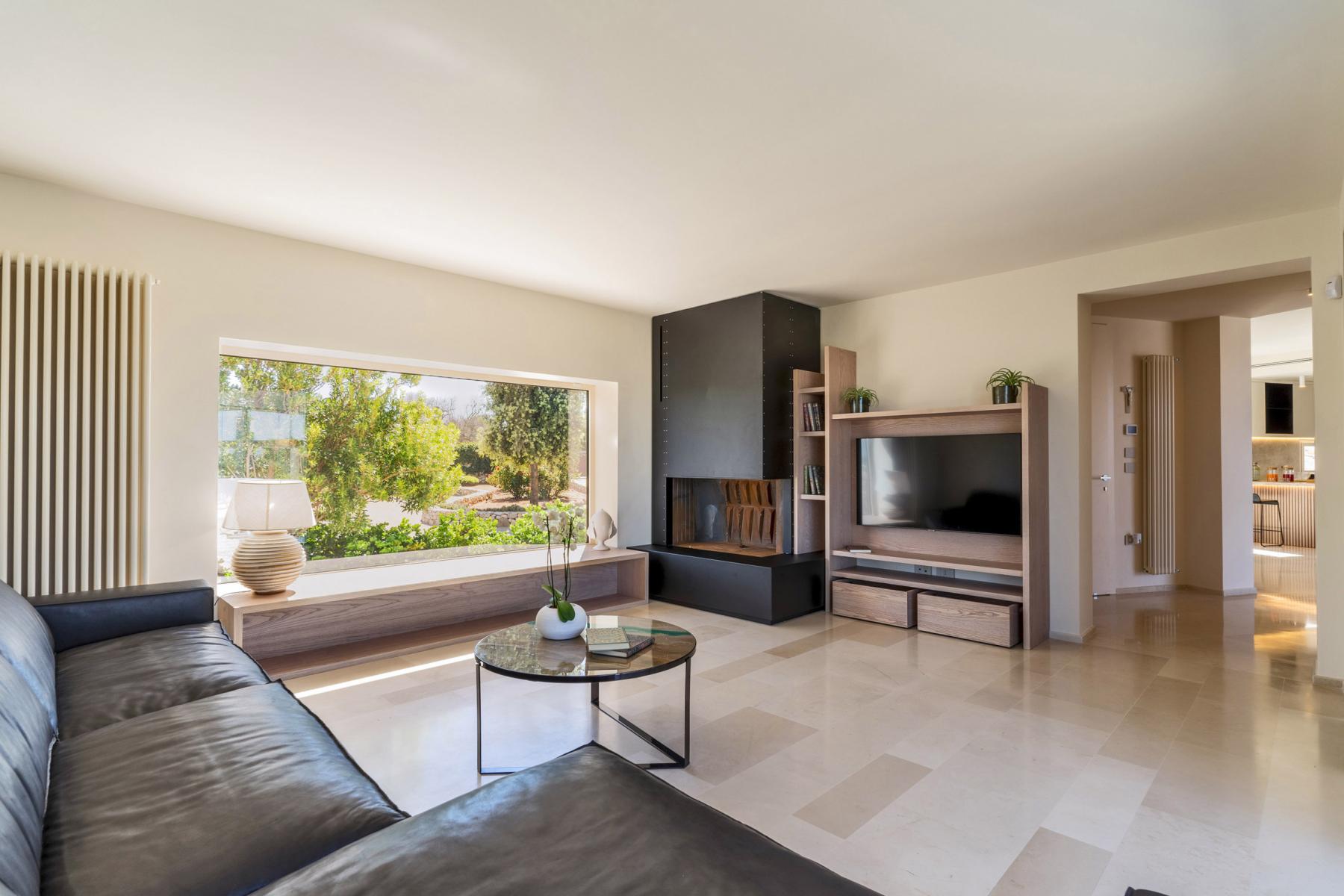 The interiors of the villa are spacious and welcoming, characterized by design elements and quality materials.